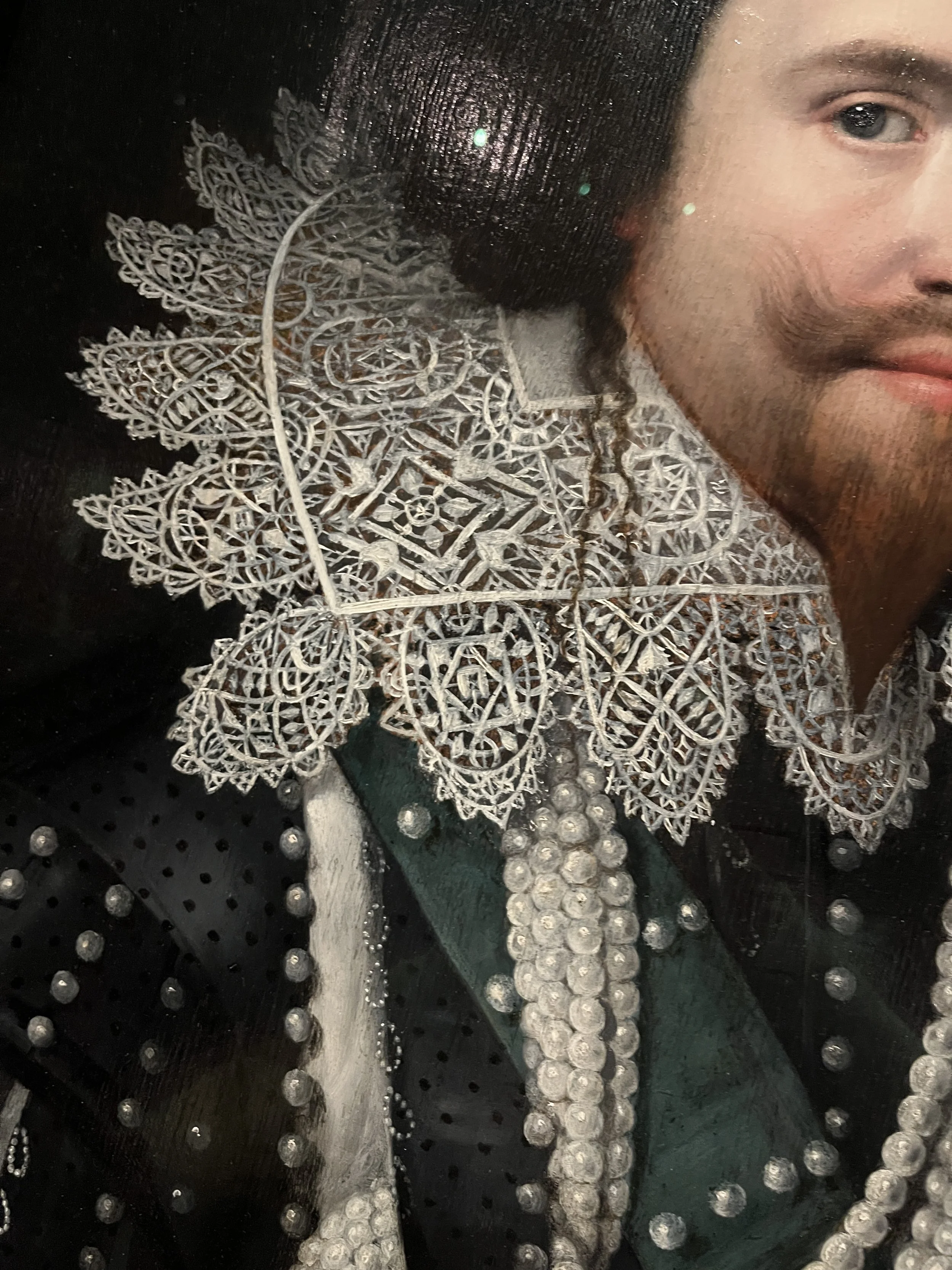 Detail of lace from George Villiers, Duck of Buckingham by Michiel Jansz van Miereveld (1625-26, oil on wood panel)