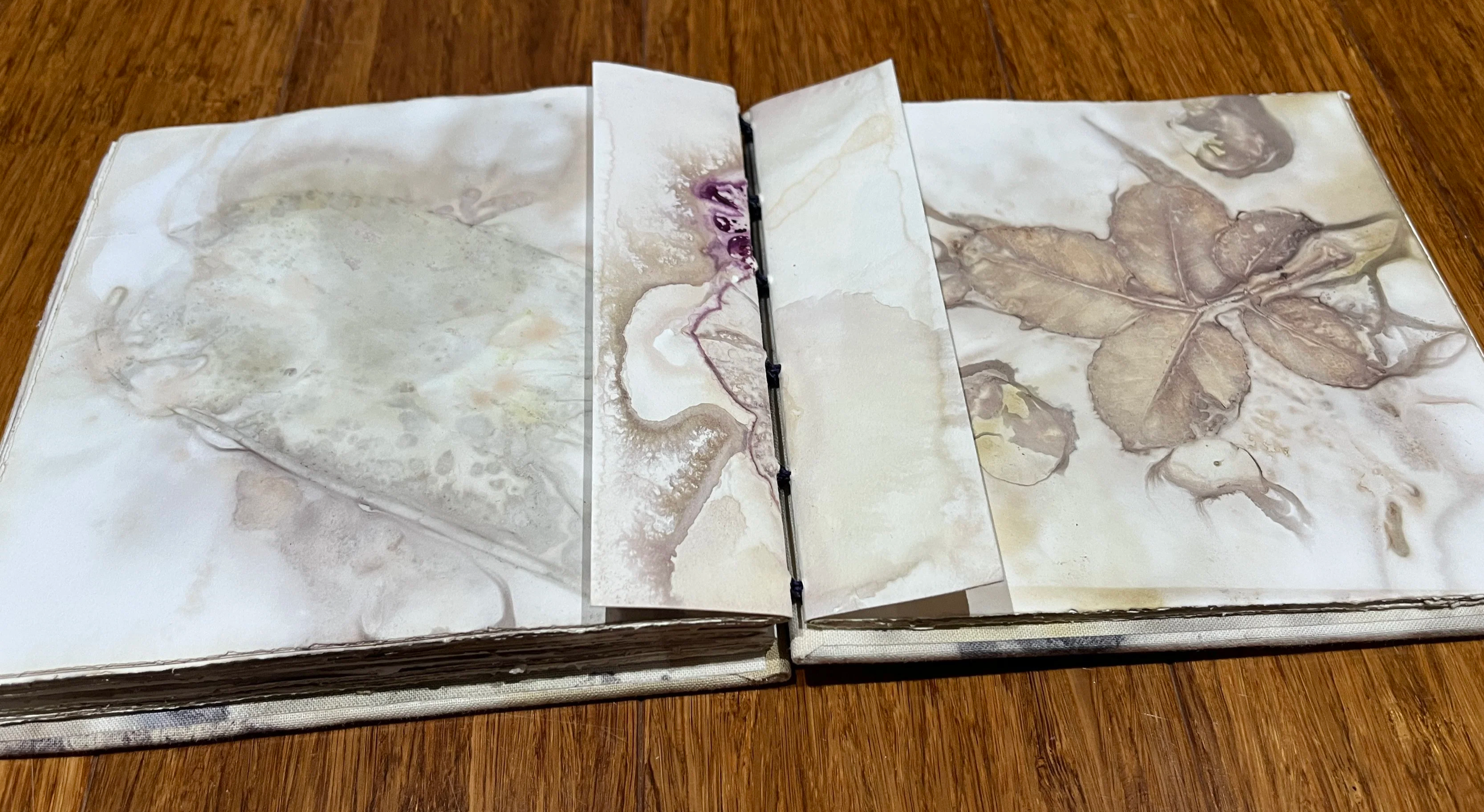 But it's not just the makers who are drawn to the feel of things. Those who end up using or admiring them are engaged by touch too. Fibres West also hosted an evening where artists sold their work. I was immediately attracted by a table of beautiful handmade books by Dianne Strahan of Dize Designs. Every part of the books was botanically printed - the fabric covering the front and back boards, the paper that filled the pages, and the cord that had been used to stitch the binding. I am not especially interested in doing botanical printing myself, but I adored Dianne's finished product. I literally touched and held every book (there were about eight on the table) until I settled on the one I loved. The pressing of the leaves into the paper hasn't only left the most divine colours, but also a subtly embossed texture that makes each page unique and special.