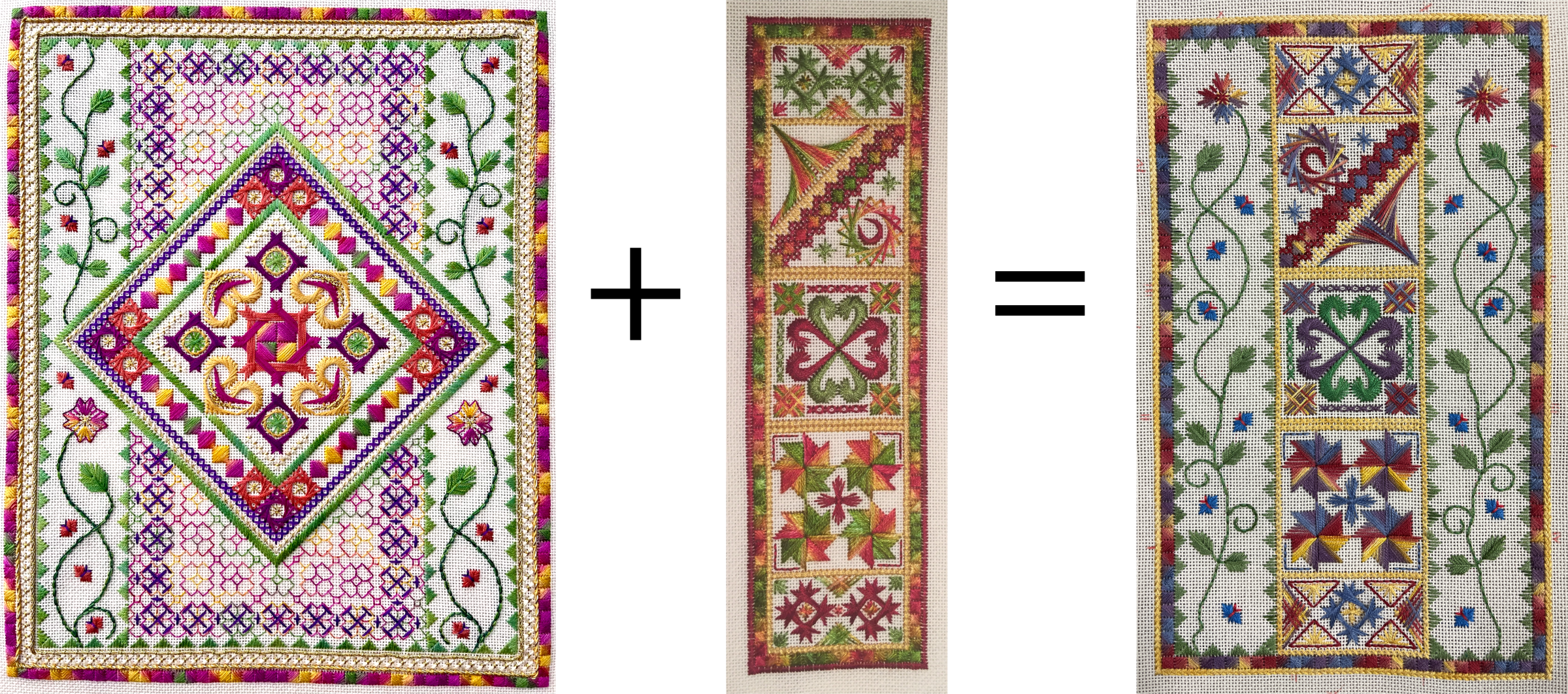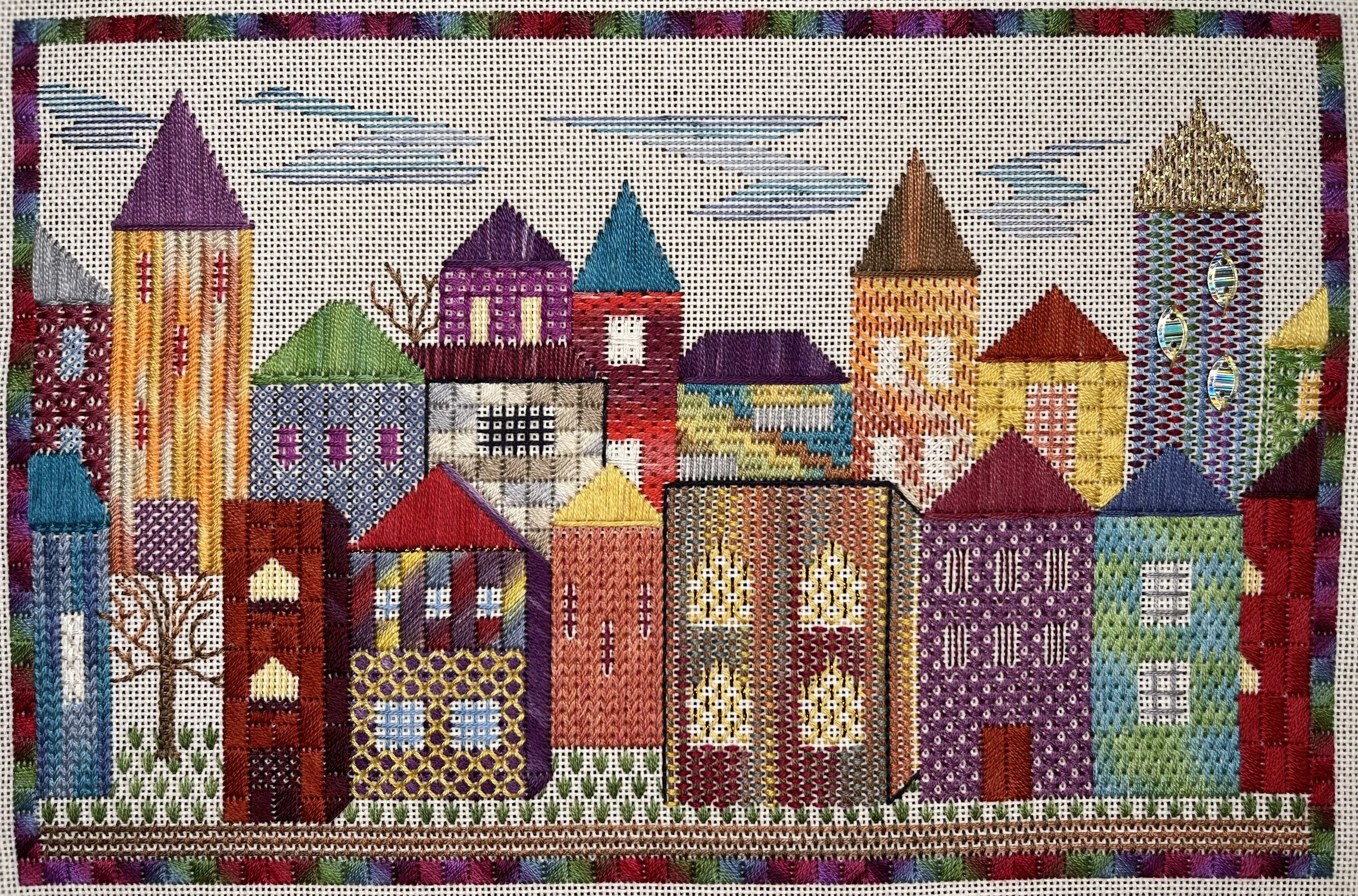 Let’s look at an example. This year, I shared the Denmark Dreaming pattern with a Canvaswork group I run once a month for the Embroiderers’ Guild of Western Australia. Denmark Dreaming was originally designed by my Mum. The group loved it and they have all been working their own versions. I wrote the pattern to deliberately not include instructions for colour. I wanted people to grow their creative confidence by choosing their own palette, especially as it’s a great way to use up bits and pieces of threads left over from other projects. I’ve loved listening to conversations around the room as people have asked each other for advice - “Do you think the red or the purple would be better here?” or “What should I use for this roof?”